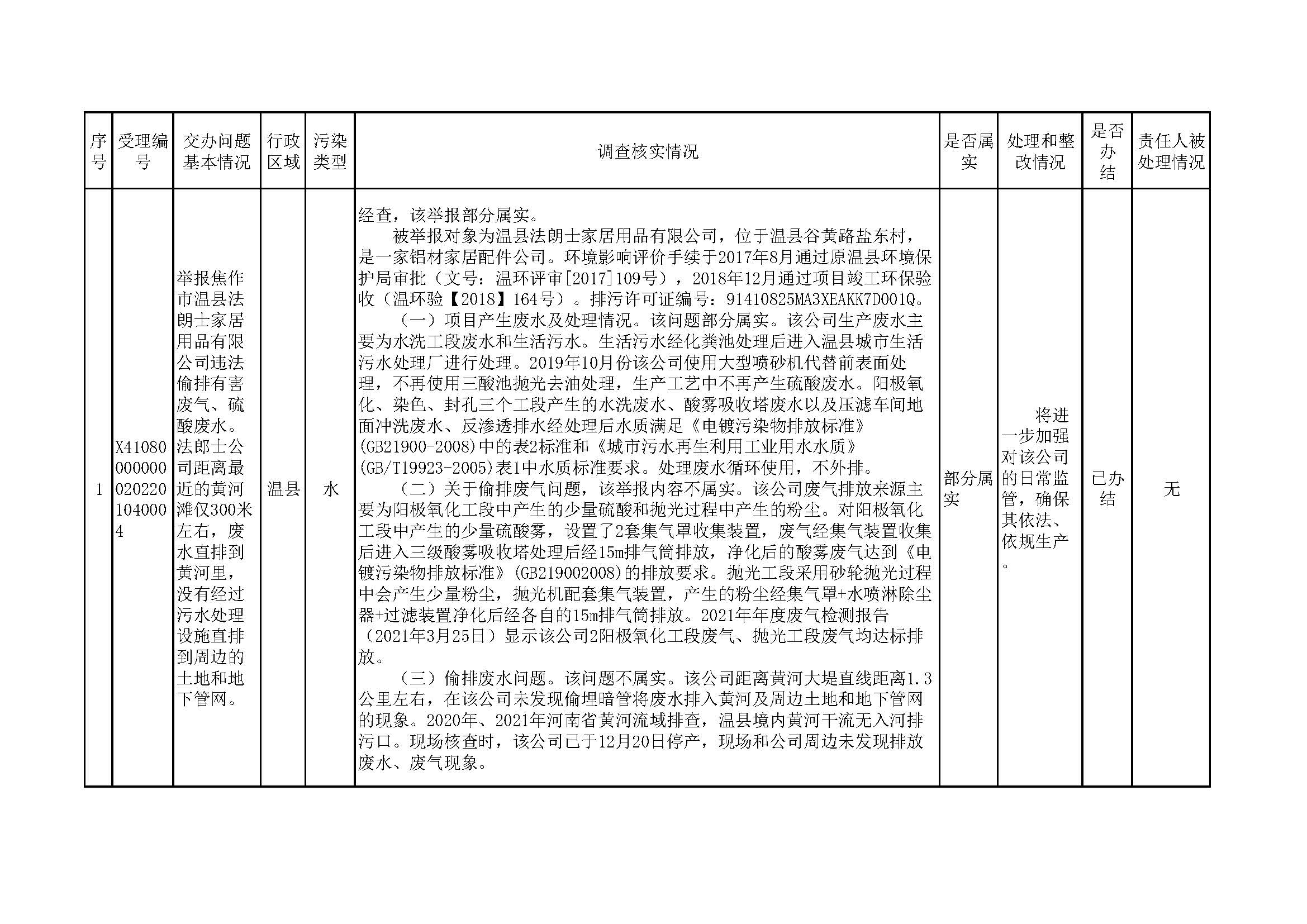 省委(wei)生(sheng)态环境保护督察信(xin)访举报转办(bàn)咊(he)边督边改情况一(yi)览表(第七批(pi)2022年(nian)1月9日(ri))