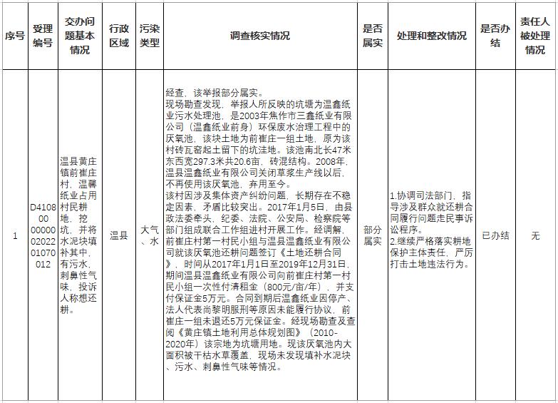 省委(wei)生(sheng)态环境保护督察信(xin)访举报转办(bàn)咊(he)边督边改情况一(yi)览表(第十批(pi)2022年(nian)1月12日(ri))